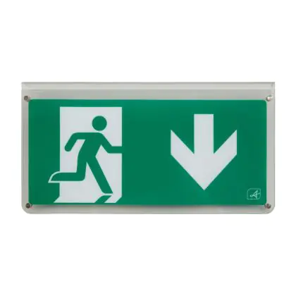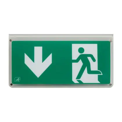 Ansell A due lati Cartello Freccia Down per LED Cartello uscita di emergenza Eagle 3-in-1