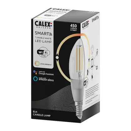 Descrizione Calex Smart Tuya Wifi E14 Candela Filamento 4.5W 450lm - 818-830 Regolabile Bianca | Dimmerabile - Sostitutiva 40W