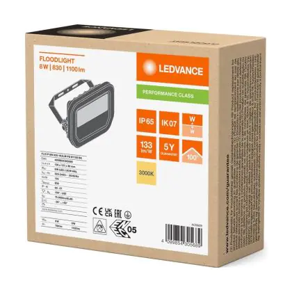 Descrizione Confezione Multipack 4x Ledvance Proiettore LED Aluminium Nero 8W 1100lm 100D - 830 Luce Calda - | IP66 - Simmetrico