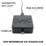Il colore della luce ti dice quale colore di luce emette l'illuminazione: bianco, colorato o UV. Per molti prodotti della nostra gamma, si tratta di bianco, disponibile da bianco molto caldo a bianco luce diurna (espresso in Kelvin). Con la luce colorata hai due opzioni: 1. Un colore fisso, come rosso o verde. 2. RGBW, che significa che puoi determinare tu stesso il colore della luce in qualsiasi momento: bianco o colorato.