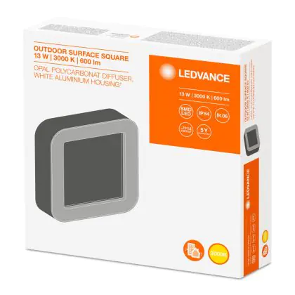 Lámpara LED Ledvance Outdoor Surface Cuadrado 13W 3000K Blanco 480 Lumen LED Integrado