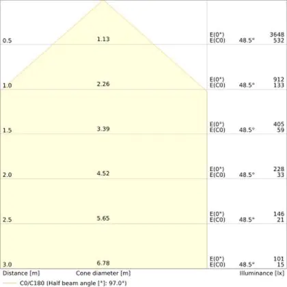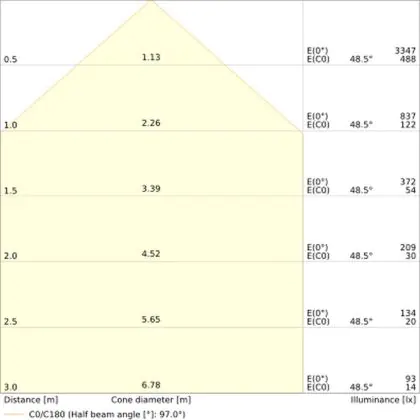 L'apertura del fascio luminoso indica l'angolo del fascio di luce proveniente da una lampada o lampadina. Si misura in gradi (D) e più piccolo è l'angolo, più piccola è l'apertura del fascio di luce.