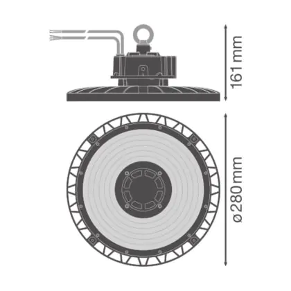 Descrizione Ledvance Highbay LED Gen 5 Aluminium Nero 75W 13200lm 70D - 840 Bianco Freddo | IP66 - 1-10V Dimmerabile