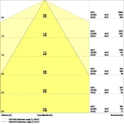 Il codice colore è una combinazione di resa cromatica (CRI) e colore della luce (Kelvin). La prima cifra indica la resa cromatica (1 = resa del colore molto bassa, 9 = massima resa del colore), mentre la seconda e la terza si riferiscono al colore della luce. Esempio: il codice colore 830 indica una buona resa cromatica (8) e luce bianca calda (3000K). |