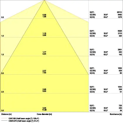 L'apertura del fascio luminoso indica l'angolo del fascio di luce proveniente da una lampada o lampadina. Si misura in gradi (D) e più piccolo è l'angolo, più piccola è l'apertura del fascio di luce.