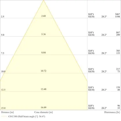 L'apertura del fascio luminoso indica l'angolo del fascio di luce proveniente da una lampada o lampadina. Si misura in gradi (D) e più piccolo è l'angolo, più piccola è l'apertura del fascio di luce.