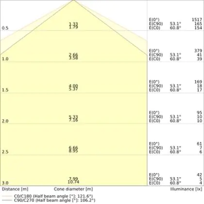 Il codice colore è una combinazione di resa cromatica (CRI) e colore della luce (Kelvin). La prima cifra indica la resa cromatica (1 = resa del colore molto bassa, 9 = massima resa del colore), mentre la seconda e la terza si riferiscono al colore della luce. Esempio: il codice colore 830 indica una buona resa cromatica (8) e luce bianca calda (3000K). |