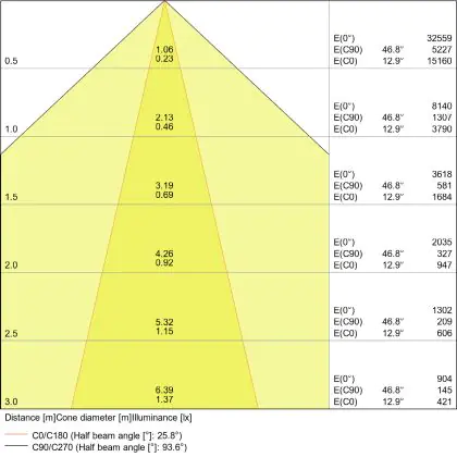 L'apertura del fascio luminoso indica l'angolo del fascio di luce proveniente da una lampada o lampadina. Si misura in gradi (D) e più piccolo è l'angolo, più piccola è l'apertura del fascio di luce.