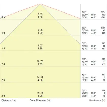 L'apertura del fascio luminoso indica l'angolo del fascio di luce proveniente da una lampada o lampadina. Si misura in gradi (D) e più piccolo è l'angolo, più piccola è l'apertura del fascio di luce.