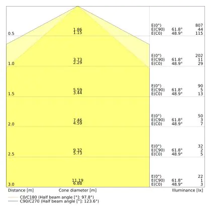 Il codice colore è una combinazione di resa cromatica (CRI) e colore della luce (Kelvin). La prima cifra indica la resa cromatica (1 = resa del colore molto bassa, 9 = massima resa del colore), mentre la seconda e la terza si riferiscono al colore della luce. Esempio: il codice colore 830 indica una buona resa cromatica (8) e luce bianca calda (3000K). |