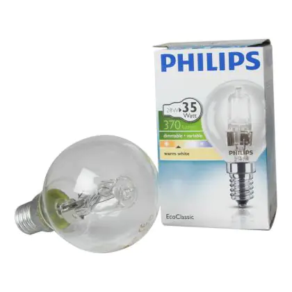 La Philips EcoClassic Lustre Clear 28W E14 230VP45 CL é una lampadina alogena dotata di base E14, comune base a vite che caratterizza molti modelli Philips. Il bulbo ha una forma sferica epresenta un vetro completamente trasparente. Quesa lampadina ha una durata complessiva di 2.000 ore, calcolate come 2 anni se considerato un utilizzo medio di 3 ore al giorno. Grazie alla presenza di un filtro UV é possibile utilizzare questa lampadina per illuminare oggetti sensibili al calore; la resa dei colori do 100Ra permette inoltre di illuminare prodotti che devono essere mostrati nei loro colori naturali.