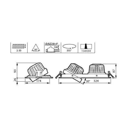 Descrizione Philips Faretti LED Greenspace Accent Gridlight Aluminium Nero 62W 4000lm 120D - 830 Luce Calda - | 154mm - IP20 - Interact Dimmerabile