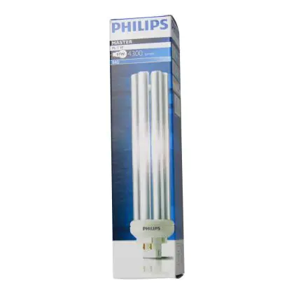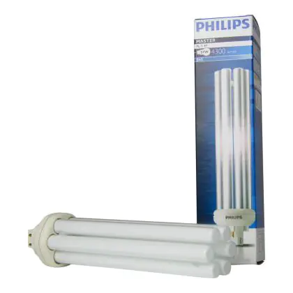 Le Philips PL-T 57W 840 4P (MASTER) sono efficienti lampade fluorescenti compatte a basso contenuto di mercurio. Sono molto efficienti e garantiscono performance ottimali di illuminazione per periodi di accensione brevi o lunghi. Tali lampade fluorescenti compatte sono dotate di attacco GX24q-5 e la base presenta 4 pin (perni). La potenza delle stesse é pari a 57W. Quando sostituisci le tue lampade fluorescenti compatte é fondamentale scegliere le nuove con il medesimo attacco, numero di pin (perni) e potenza di quelle che stai attualmente usando altrimenti non sarai in grado di installarle. La temperatura di colore di queste lampade é di 4000K, il che corrisponde ad una luce bianca fredda. L'indice di resa cromatica si pone nell'intervallo di 80-89Ra. Queste lampade sono in classe efficienza energetica 'B' . La vita media é lunga, 13.000 ore in media.