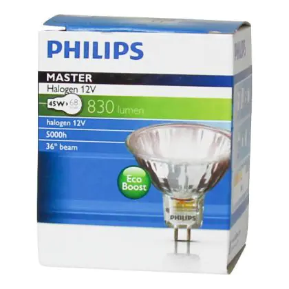 La Philips MASTERline ES 45W GU5.3 12V 36D - 18144 é una lampadina alogena dotata di una durata di 5.000 ore per permettere di evitare una manutenzione continua e frequente al tuo impianto elettrico.
