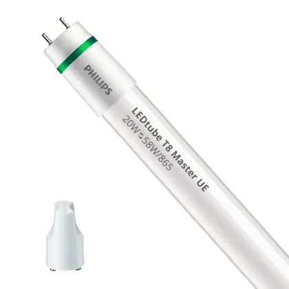 Il Philips Tubo LED T8 MASTER (EM/Mains) Ultra Efficiency 20W 3700lm - 865 Luce del Giorno | 150cm - Sostitutiva 58W è l’alternativa perfetta per il tubo fluorescente standard 58W nelle plafoniere con un reattore. Con questo tubo LED hai una garanzia di una vita media utile molto lunga e 5 anni Lampadadiretta.it di totale garanzia. .