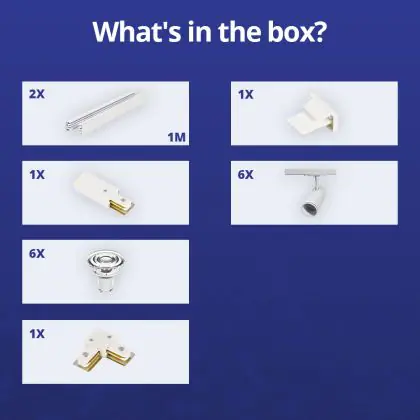| Nome del fabbricante | Complete L shaped 1-Phase Track Set White incl. 6x Spot fixture + GU10 2700K 3W Dim – 1 x 1 meter i | |