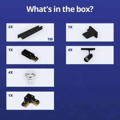 | Nome del fabbricante | Complete L shaped 1-Phase Track Set Black incl. 4x Spot fixture + GU10 2700K 3W Dim – 1 x 1 meter i | |